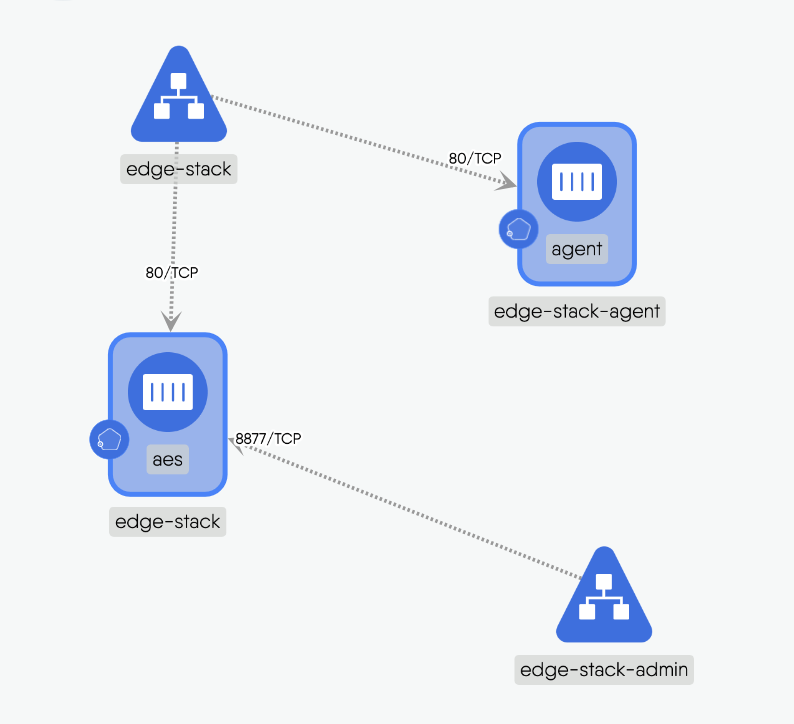edge-stack-admin Service: This Service provides administrative functions and health checks for the AES system. It communicates with the edge-stack component on port 8877/TCP for administrative purposes.