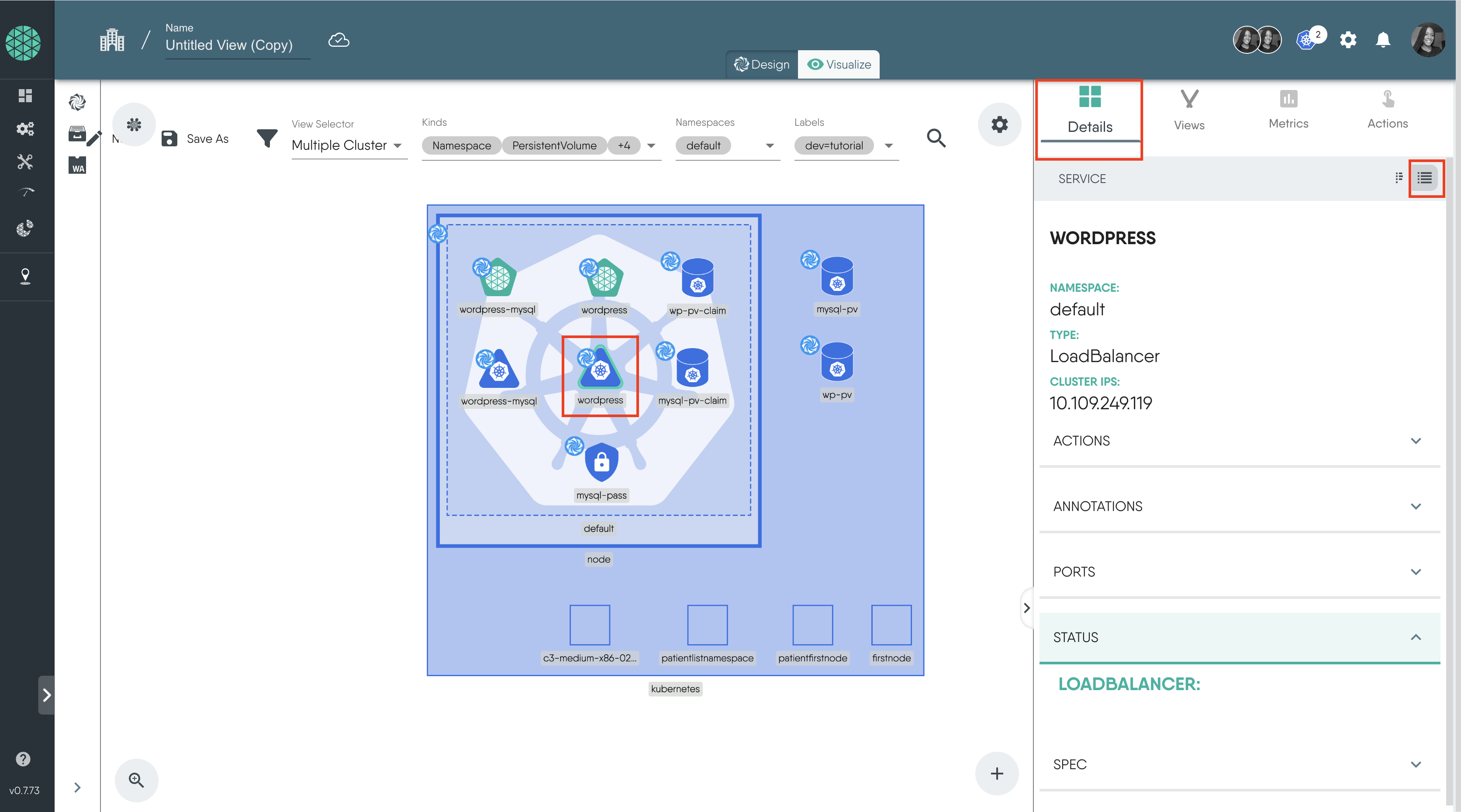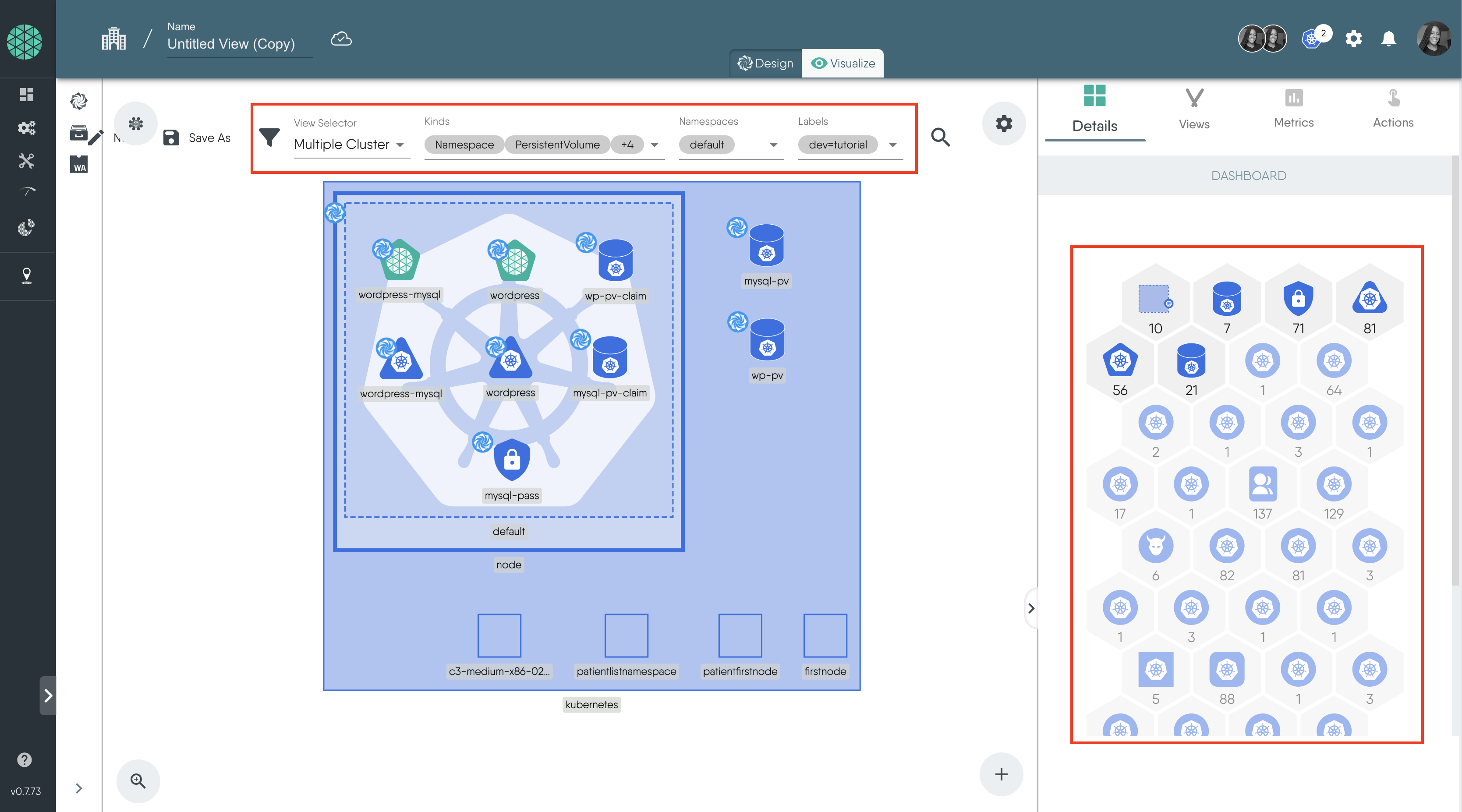 To view the resources deployed, use the Visualize section of the Kanvas. In this section, you can apply filters to display the specific resources you want to see.