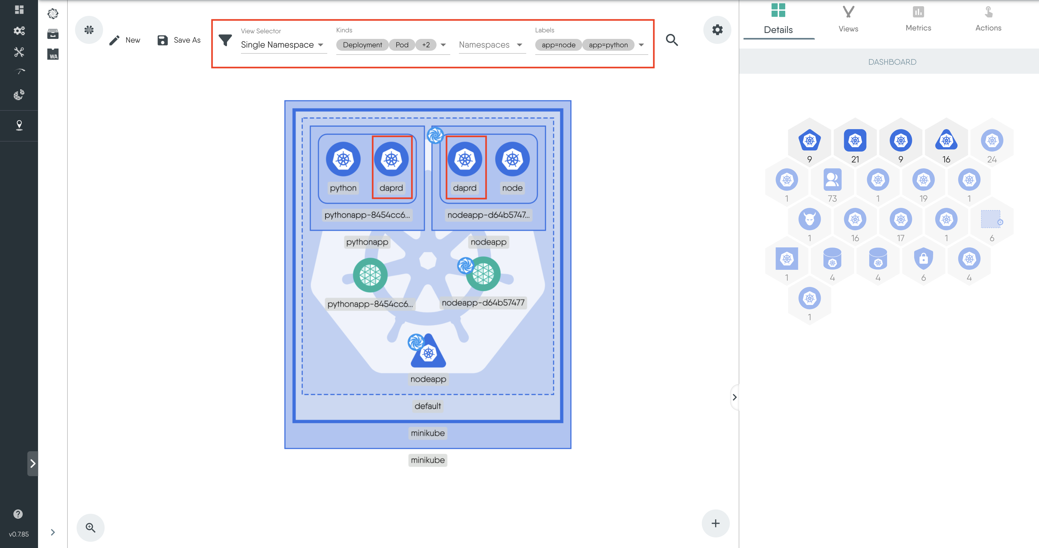 - For Kinds select the resources you want to see including Deployments, Pods, Services, Replicaset.