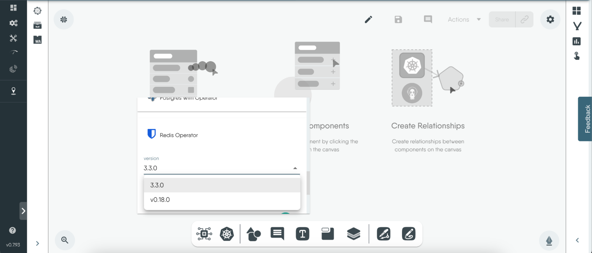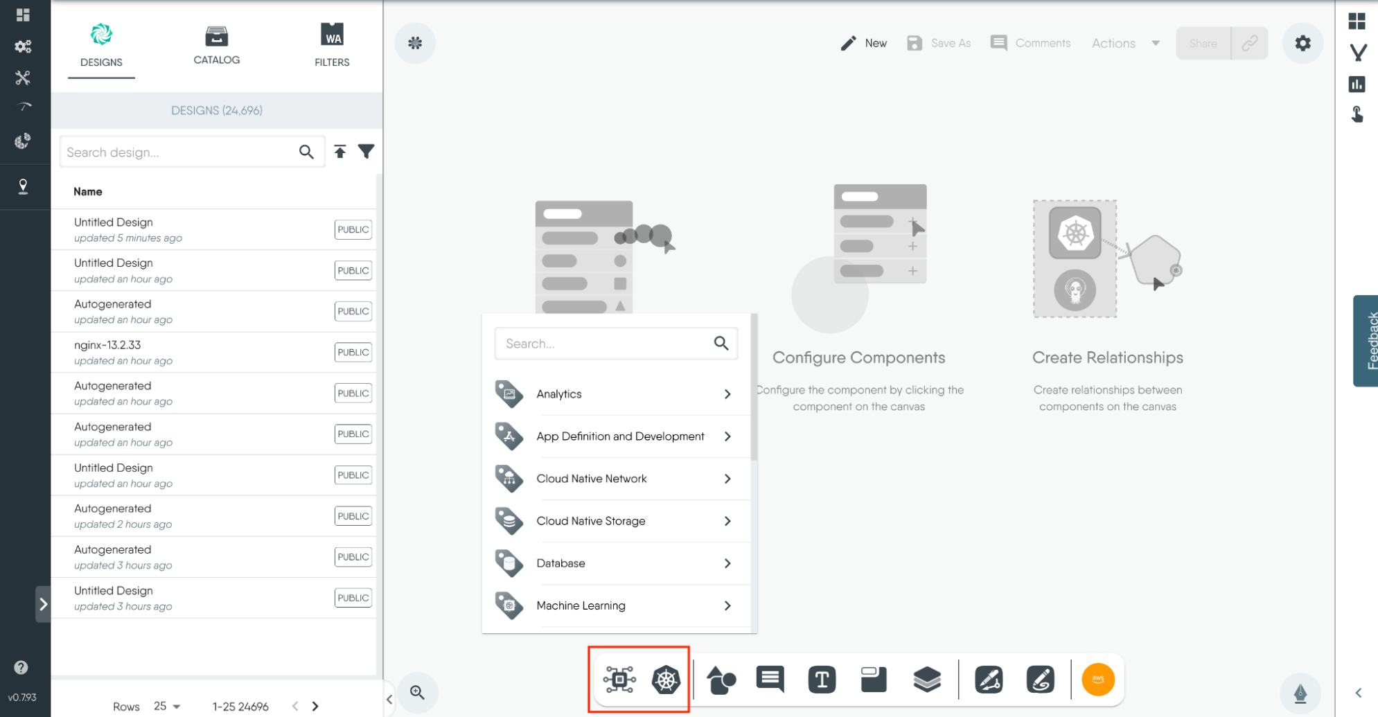 With the Designer toolbox at your disposal, effortlessly construct complex cloud-native deployments. Simply drag and drop components onto the Kanvas canvas, arranging and configuring them in a way that suits your architecture.