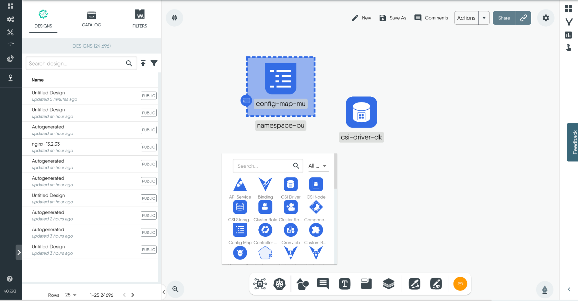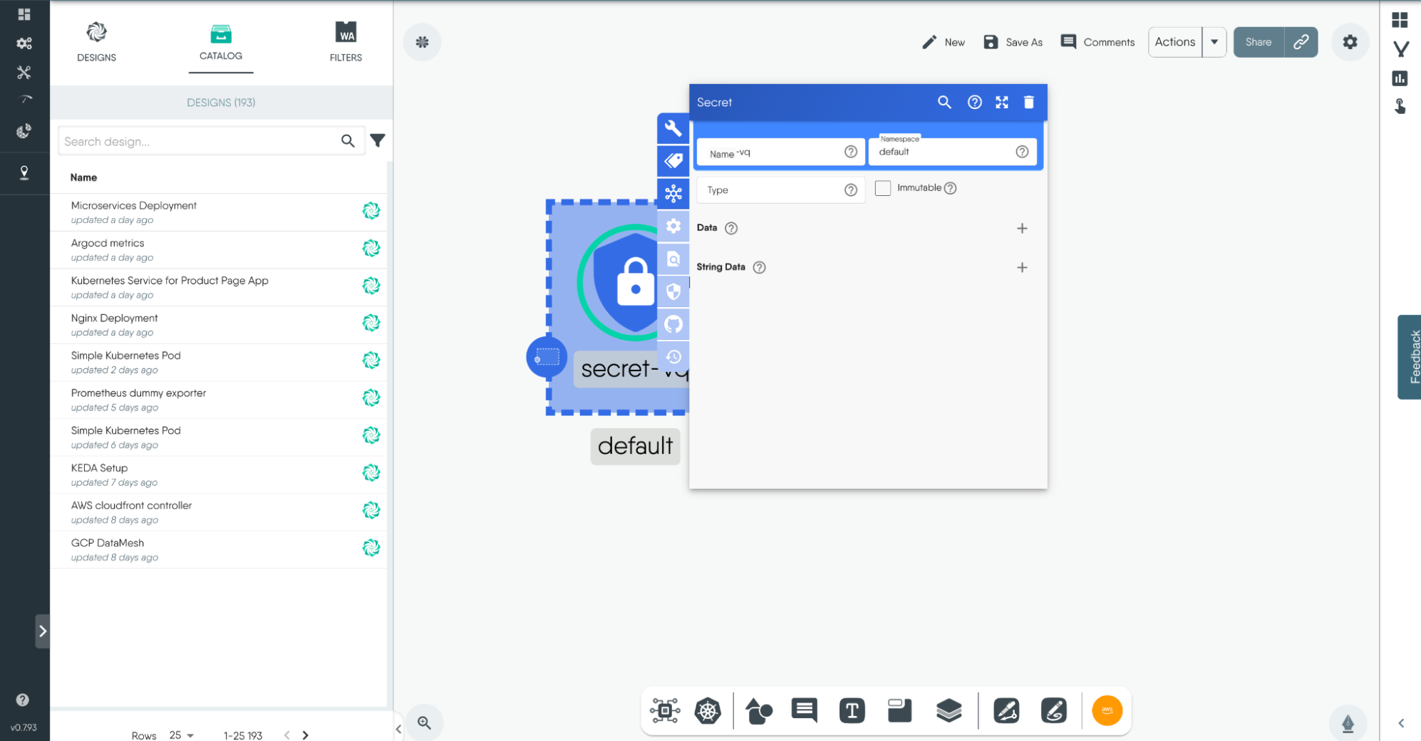 When working with Kanvas, you can effortlessly integrate various design files to start building and managing your cloud-native applications. Whether you’re working with Helm charts, Docker Compose files, or Kubernetes manifests, Kanvas provides a unified interface to import these files and visualize your infrastructure setup. This versatility allows you to streamline the design process, ensure consistency, and tailor your cloud-native environments to meet specific needs.